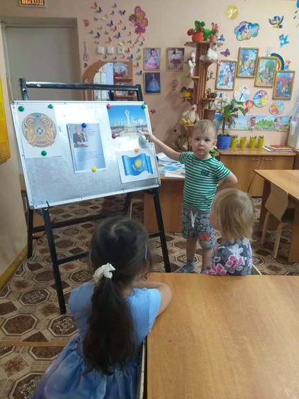 В преддверии праздника 30 ноября в нашем детском саду прошел ряд мероприятий посвященных этому празднику. Ведь именно в детском саду, дети впервые получают знания о том, что такое Родина, кто такой Президент, народ, что означают символы РК.
