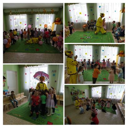 В этот день, по традиции, в нашем детском саду. было проведено развлечение «Страна детства». Утро в детском саду началось с веселой музыки, которая создавала праздничное настроение. В гости к детям приходили веселые клоуны, которые приготовили интересные конкурсы и викторины. Дети участвовали в играх, аттракционах, читали стихи, пели песни и танцевали . На прогулке дети с удовольствием рисовали на асфальте цветы, солнце, небо и т.д. Закончился праздник выпусканием воздушных шаров в небо и загадыванием желаний.