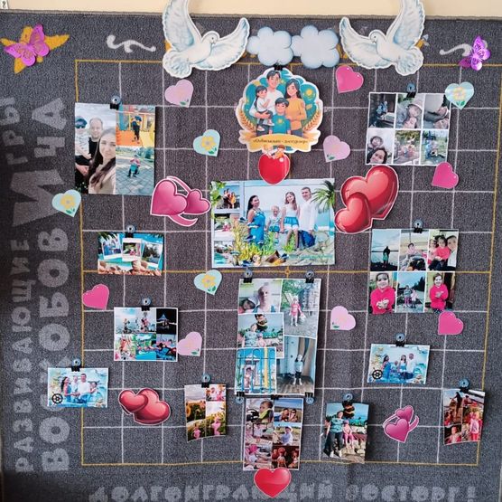 В рамках недели к Дню семьи «Отбасылық – дәстүрлер»в нашем детском саду была организована фотовыставка на тему «Меның отбасым». Всю неделю с детьми мы говорили о традициях и радостных событиях, которые происходят в их семьях. Читали стихи про семью, рассматривали картинки и фотографии, которые принесли дети, из которых мы и сделали фотовыставку.